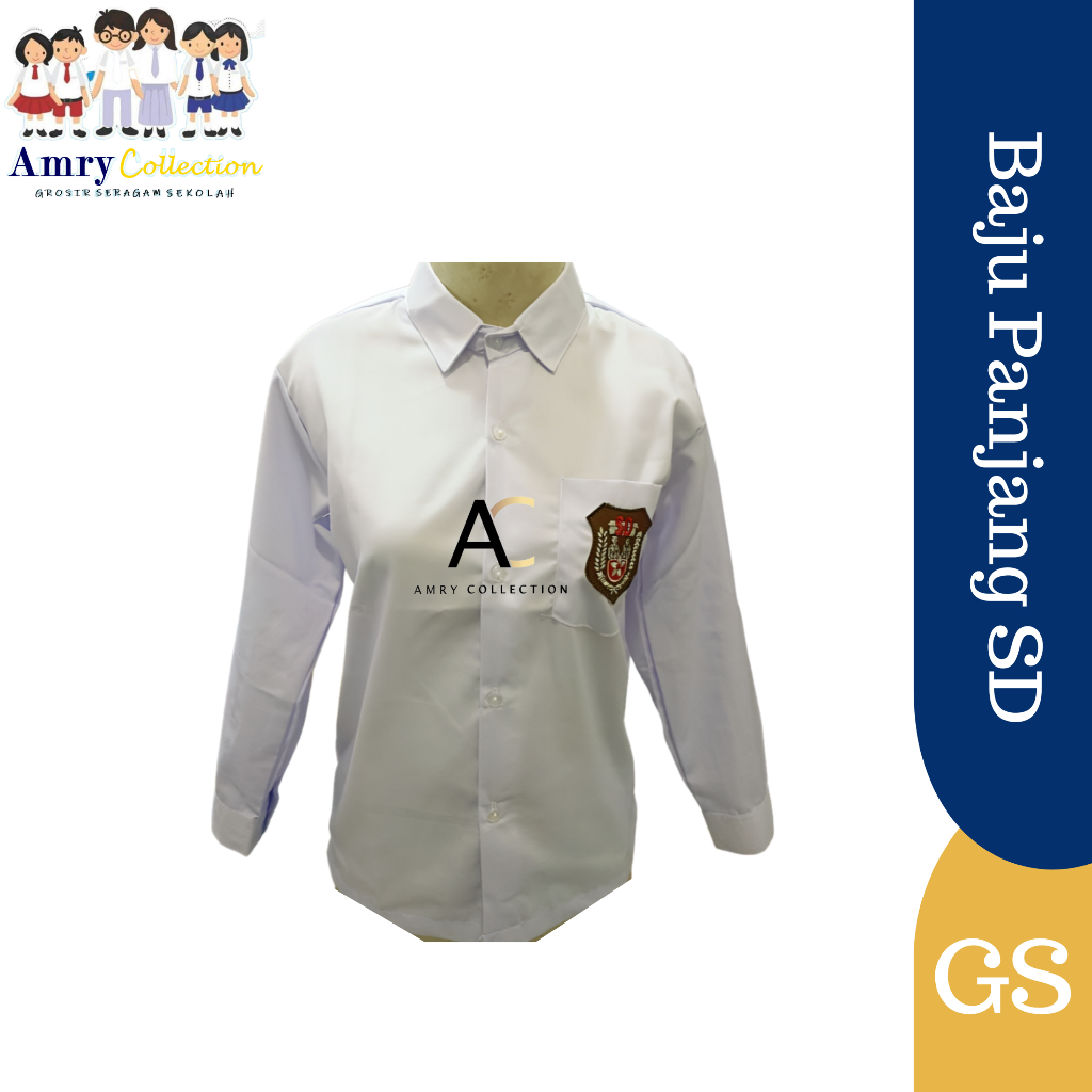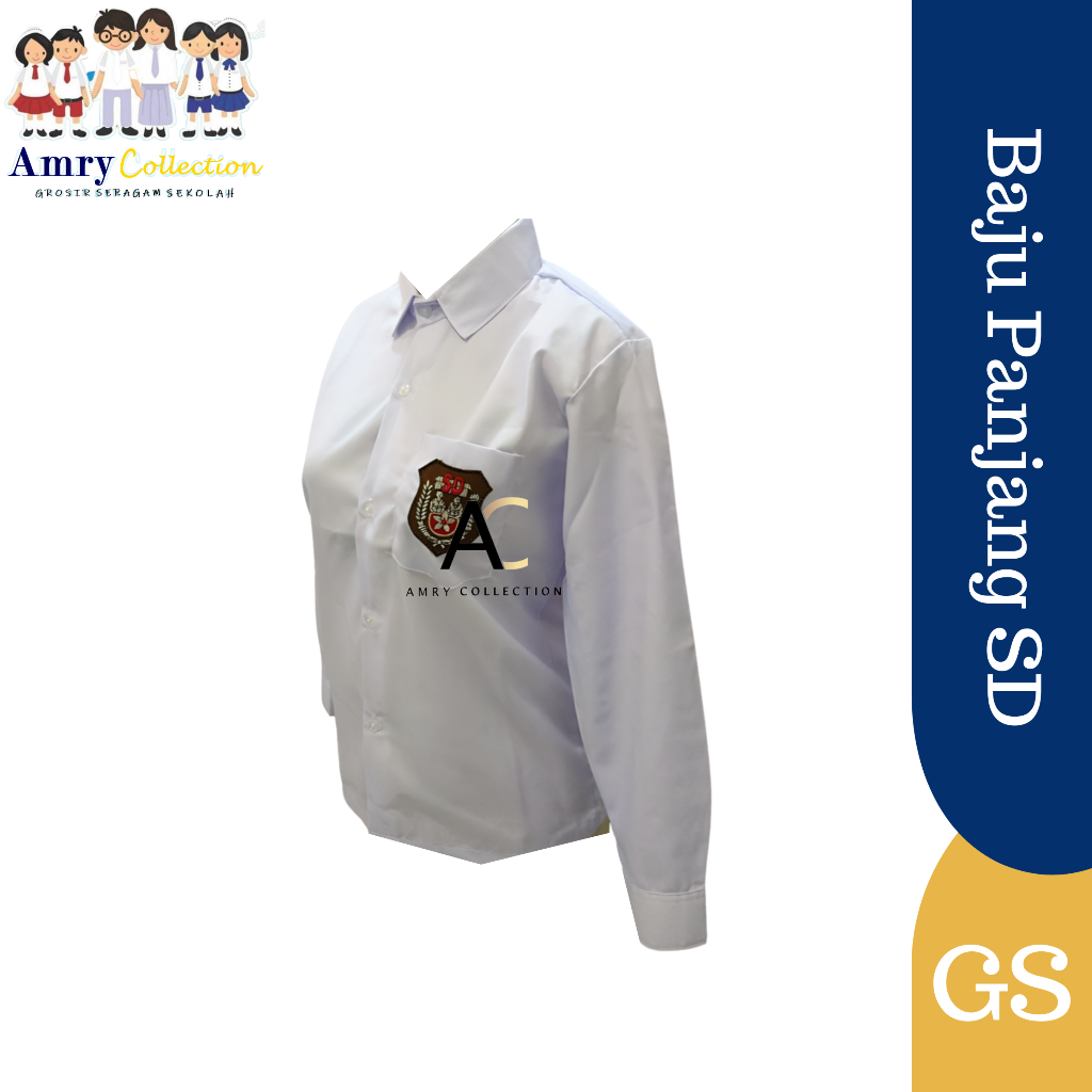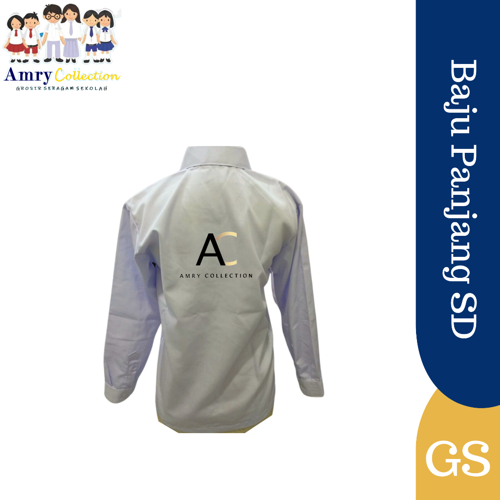 Seragam Sekolah SD Kemeja Putih GS Oxford Lengan Panjang - Bahan Tebal, Ukuran Lengkap By Amrycollection