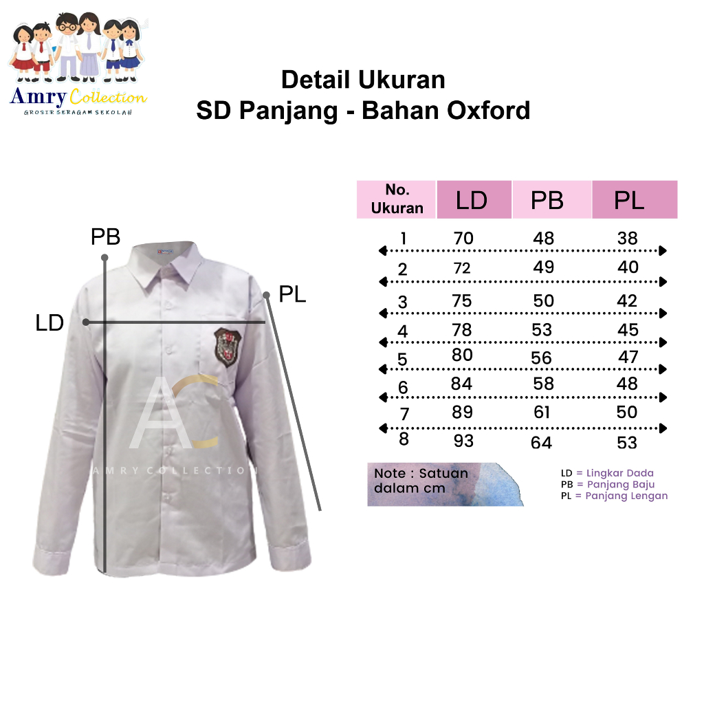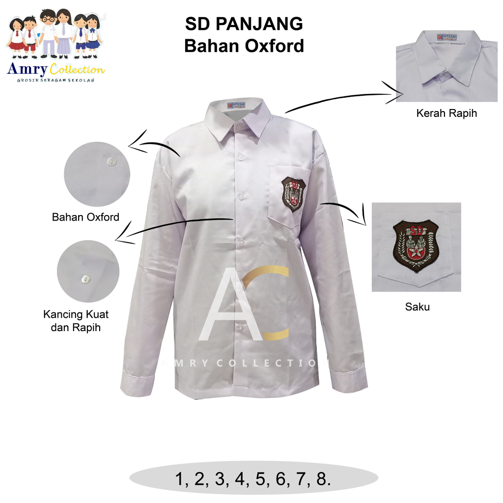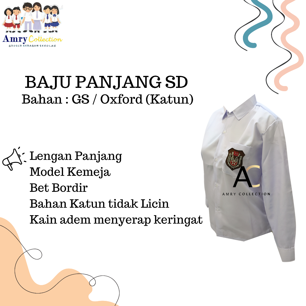 Seragam Sekolah SD Kemeja Putih GS Oxford Lengan Panjang - Bahan Tebal, Ukuran Lengkap By Amrycollection
