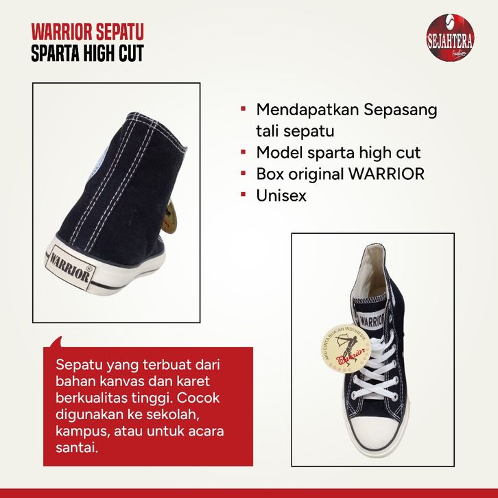 Warrior Sparta HC Sepatu Sekolah Kuliah Kerja Hitam Putih BW
