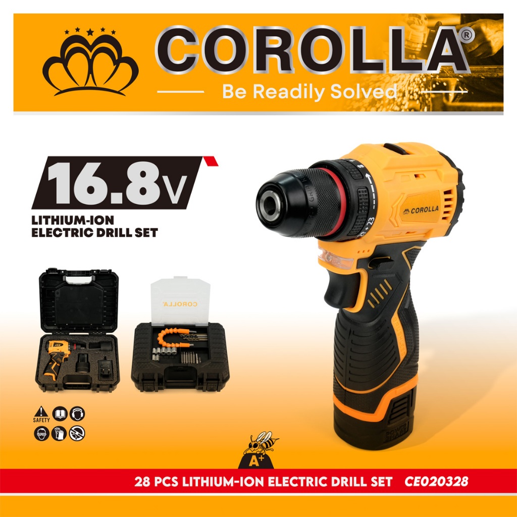Mesin Bor Listrik Impact Drill Corolla/LAXTON LX18 Electric Drill Set 16.8 V / 28pcs / Mesin Bor Baterai Tangan 16,8V