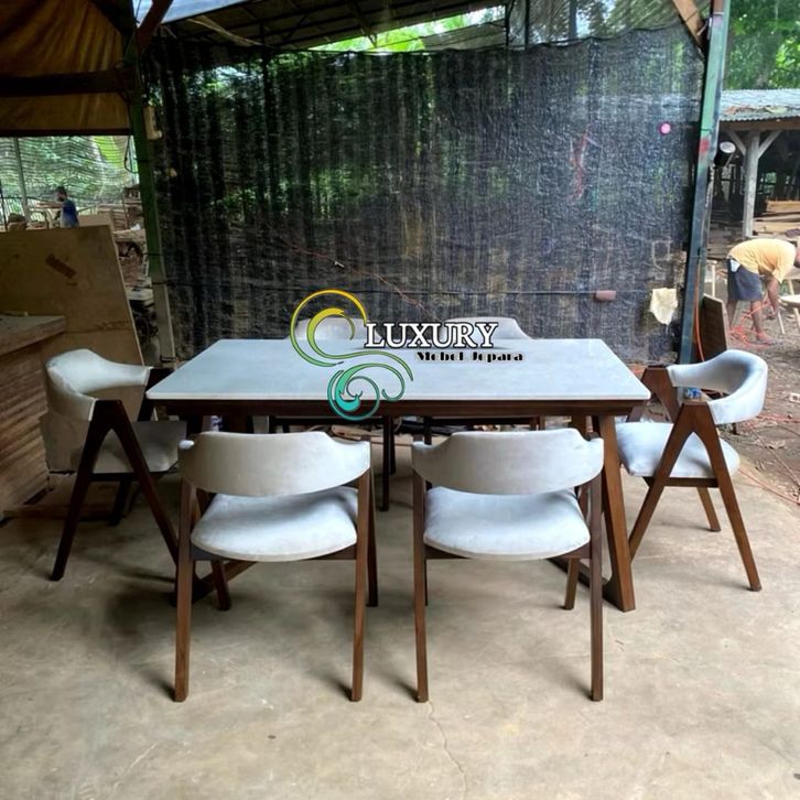 SET MEJA MAKAN MARMER DINNING SET MEJA KURSI A JATI