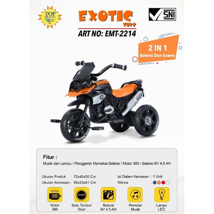 Motor Aki Anak Murah EXOTIC 2 IN 1 2214 EMT-2214 Ban Karet Anti Slip