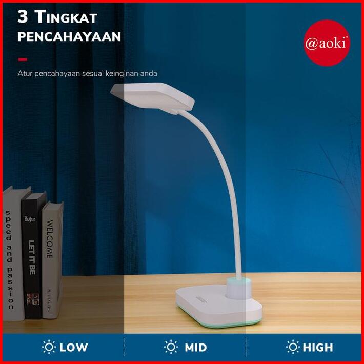 Aoki Lampu Belajar Premium Usb-c Super Terang Lampu Tidur Warna Macaron Hijau Merah Baterai Usb