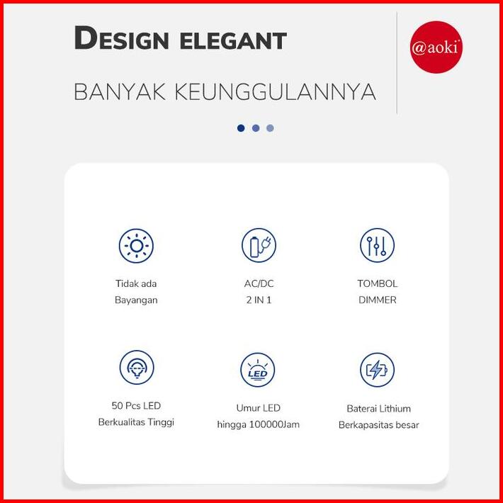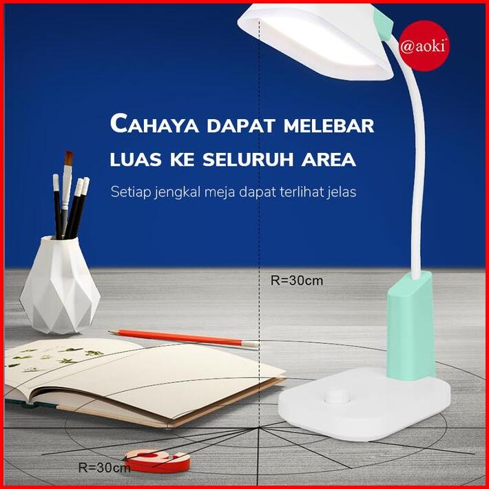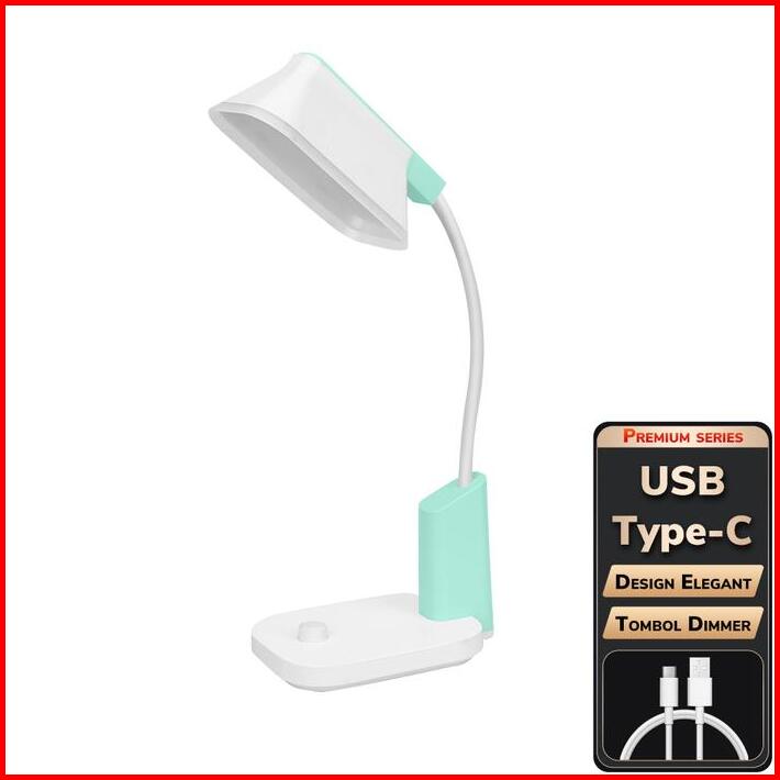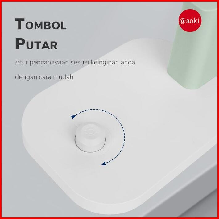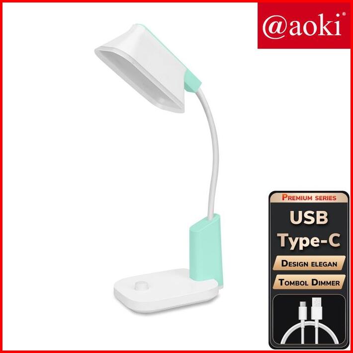 Aoki Lampu Belajar Premium Usb-c Super Terang Tombol Dimmer Warna Macaron Hijau Merah Baterai