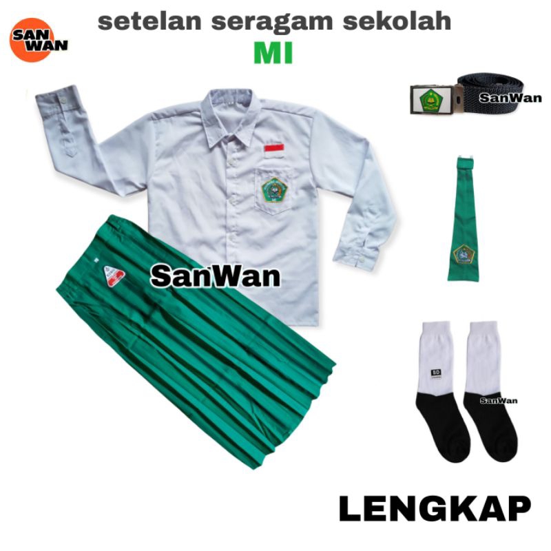 Seragam Sekolah MI Perempuan Setelan Sekolah Dasar Baju Rok Panjang Lengkap Kelas 1-6 SD