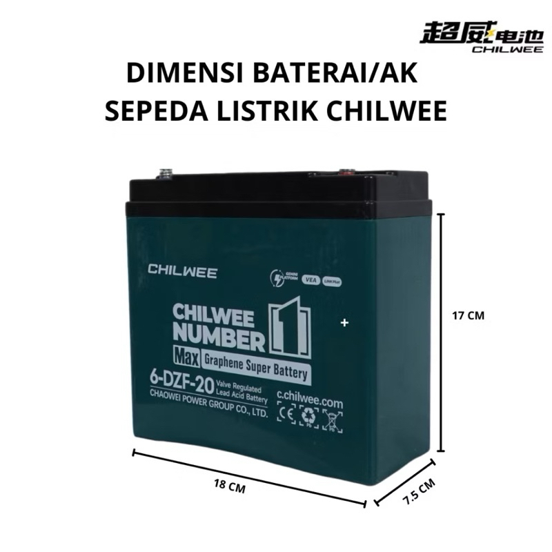 AKI SEPEDA LISTRIK CHILWEE 6-DZF-20 / 6DZF20 - BATERAI SEPEDA LISTRIK 12V - 20AH