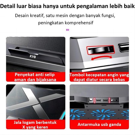 2025 KYB Cooling Pad Laptop Gaming Kipas Pendingin Laptop Portable 8 Kipas