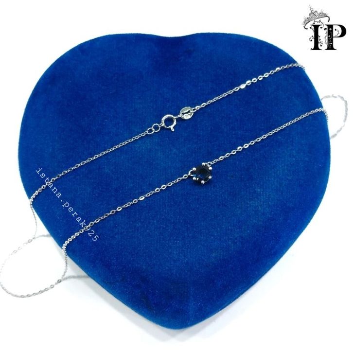 Kalug Koye Perak Asli Silver 925 Lapis mas Putih Model Rantai Nori Polos dengan Liontin Solitaire Batu Biru