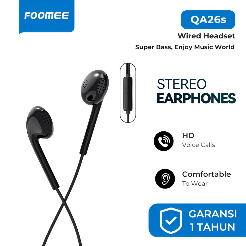 FOOMEE QA26S WIRED EARPHONE SEMI IN-EAR SUPER BASS HEADSET KABEL 120CM
