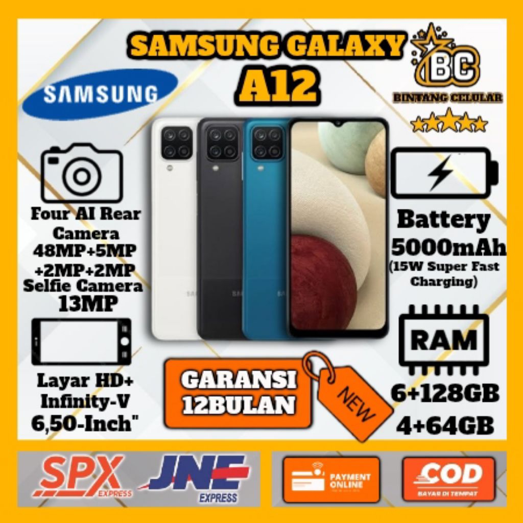 BISA [NEW] HP SAMSUNG A12 Ram 6GB+128GB Camera 48MP + Display 6,5 inches + Battery 5000mAh} GARANSI 1 TAHUN