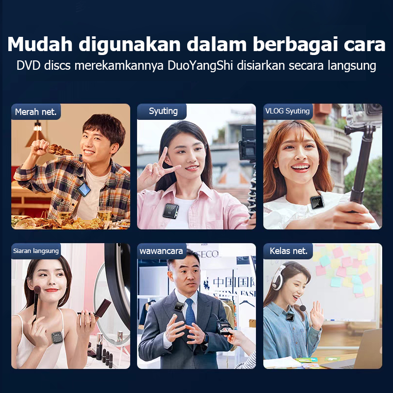 Wireless Lavalier Microphone untuk iPhone Android -Untuk YouTube/wawancara/vlog/podcast