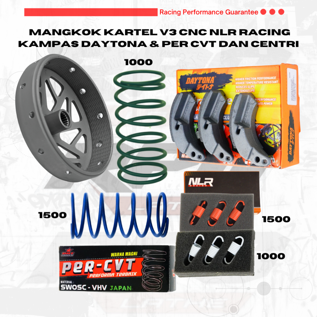 Paket Kirian Mangkok Ganda Racing V3 CNC set Kampas Daytona/Per CVT BRT/Per Sentri NLR untuk varian motor matic