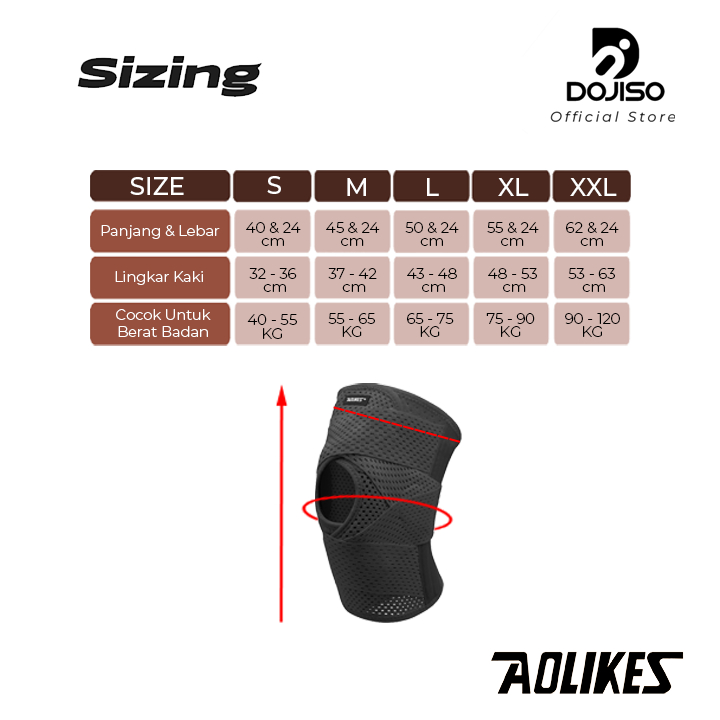 Knee Support Aolikes 7900 Deker Pelindung Lutut Olahraga Terapi Lutut Penyangga Lutut Nyeri Cedera Lutut