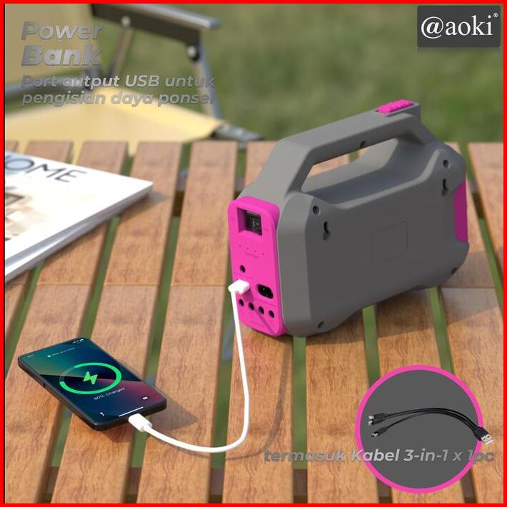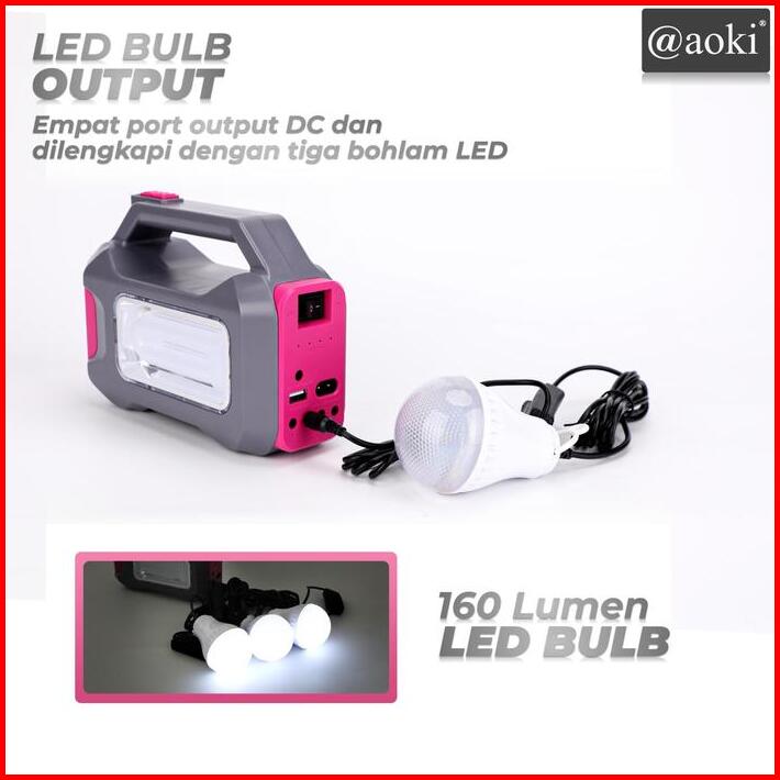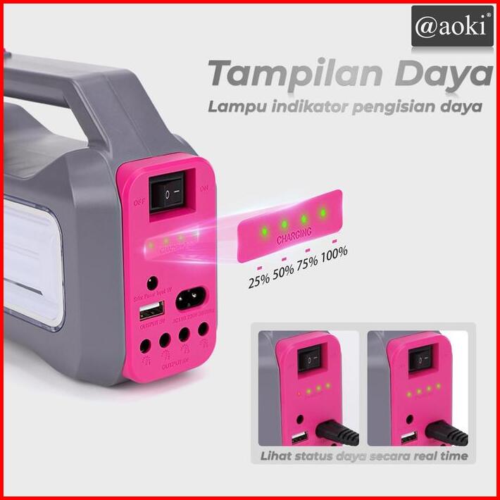 Aoki Solar Lighting Mobile Power System 8000mah Power Bank Multifungsi Led Dc Baterai Jam Merah Ponsel Telepon Powerbank