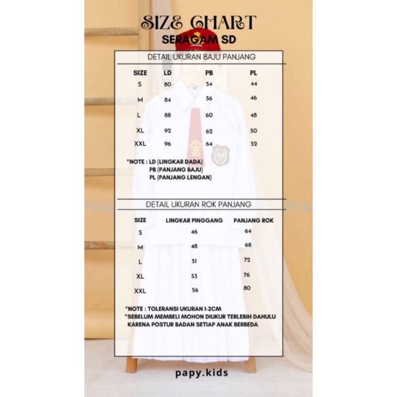 PAPY.KIDS -FULLSET Seragam SD Putih perempuan / Seragam Sekolah Dasar