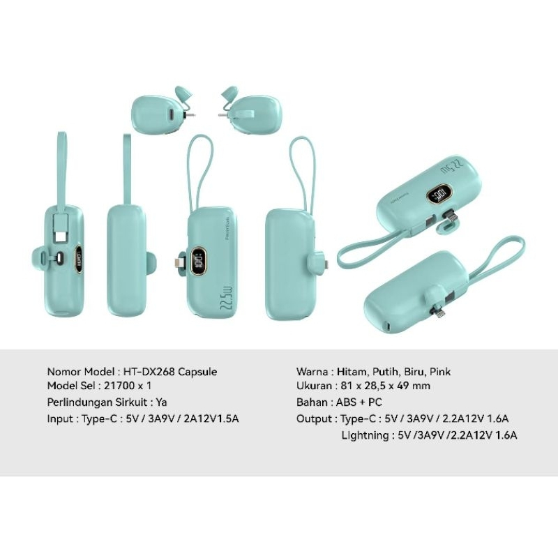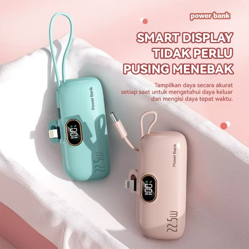 PORTABLE MINI UNIK DAN LUCU POWERBANK 8000MAH 22.5W FAST CHARGING DENGAN KABEL TYPE-C / IOS LIGHTNING MINI EMERGENCY CHA