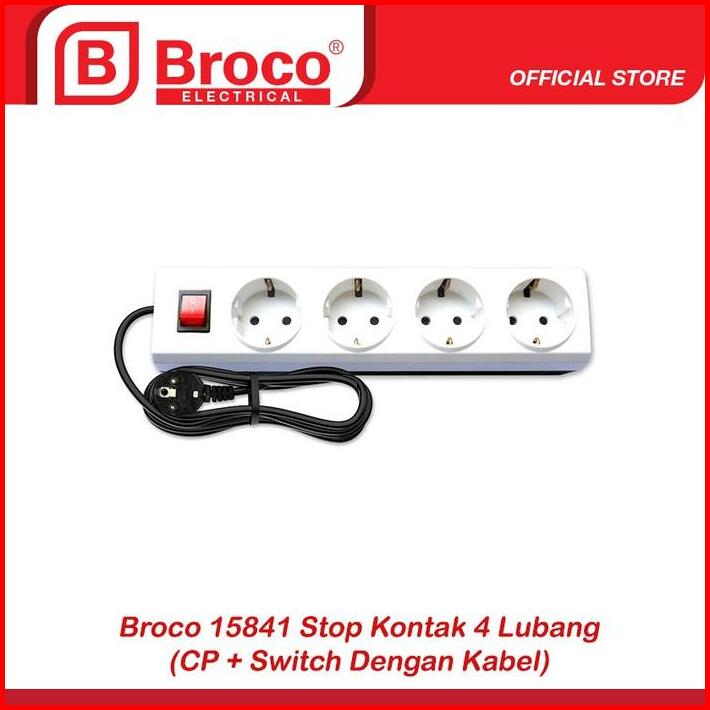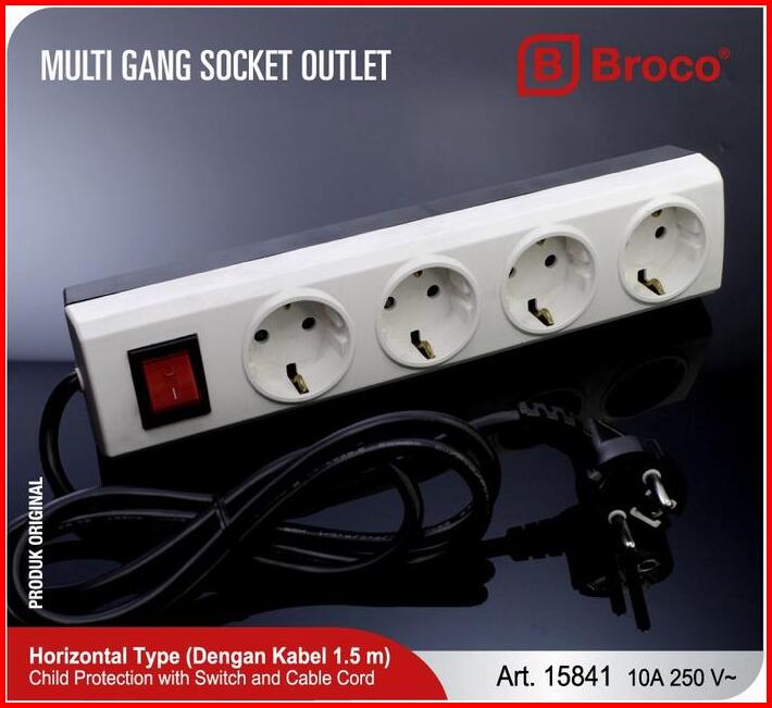 Broco Stop Kontak 4 Lubang Dengan Pengaman Child Protection Switch Kabel 15841