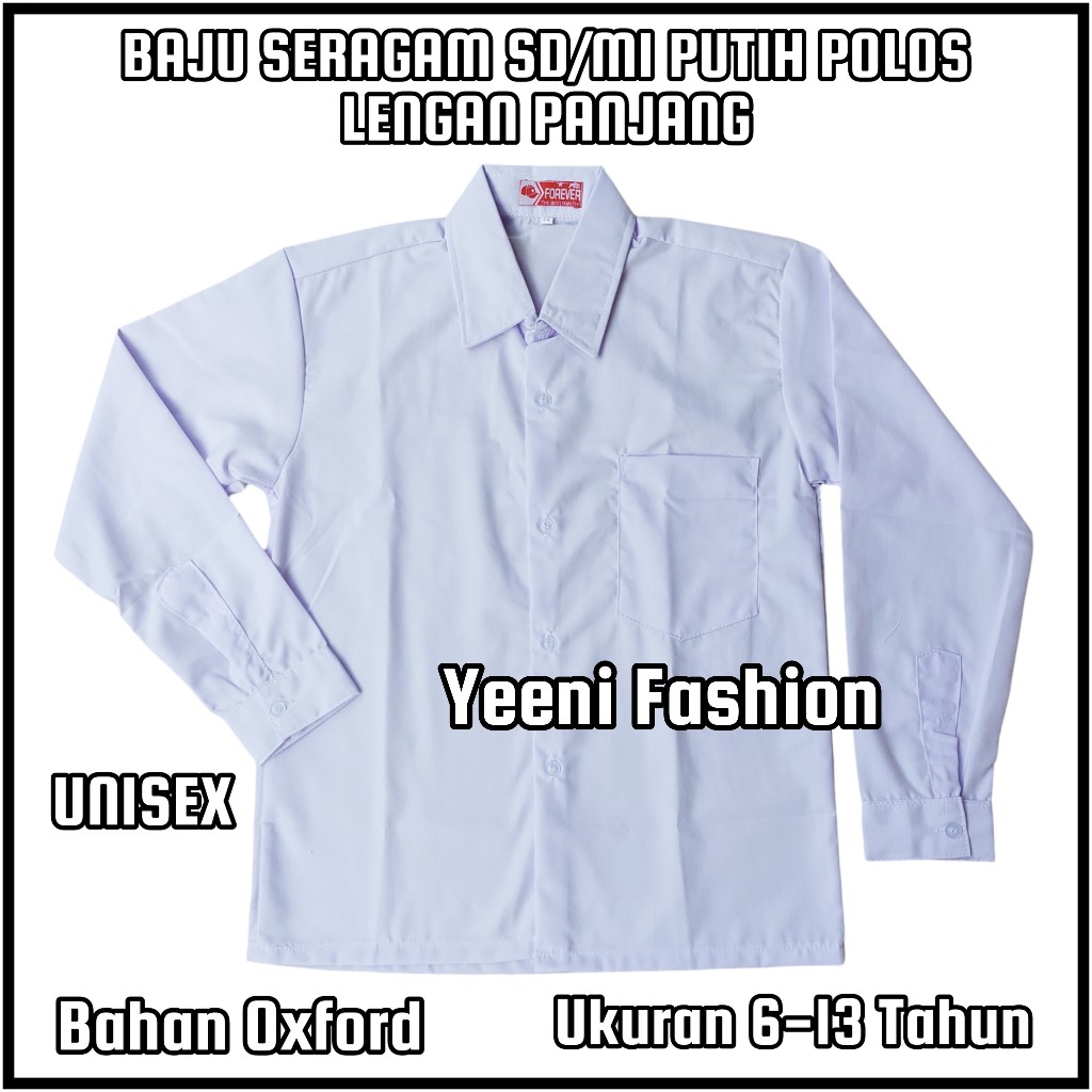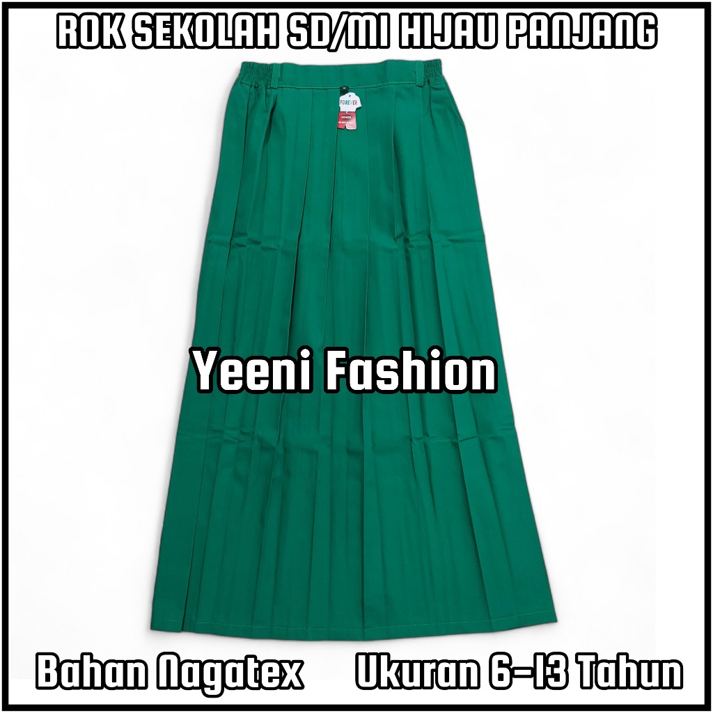 Setelan Seragam Sekolah SD/MI Putih Hijau Putri Baju Putih Polos Lengan Panjang Rok Hijau Panjang Kelas 1-6