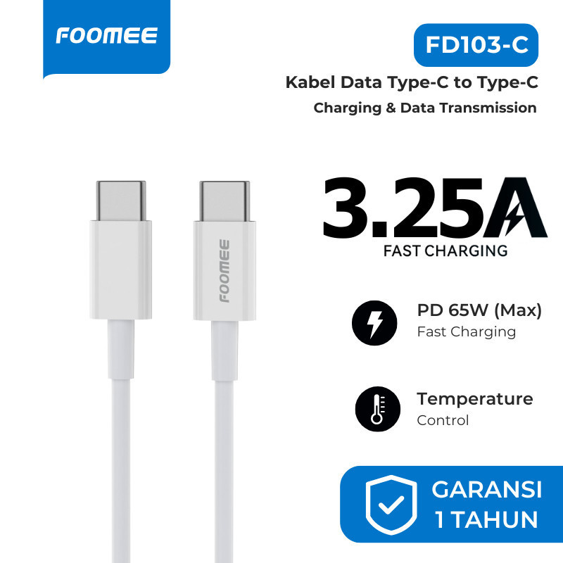 KABEL DATA TYPE-C TO TYPE-C 3.25A PD65W FAST CHARGING 1M FOOMEE FD103-C