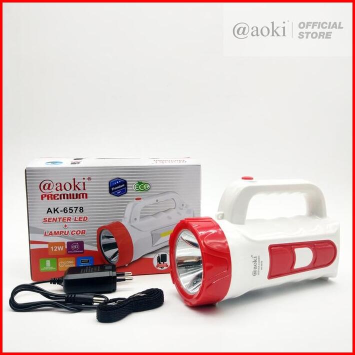 Senter Led 12w 10wcob Lampu Samping Power Bank Aoki Ak 6578