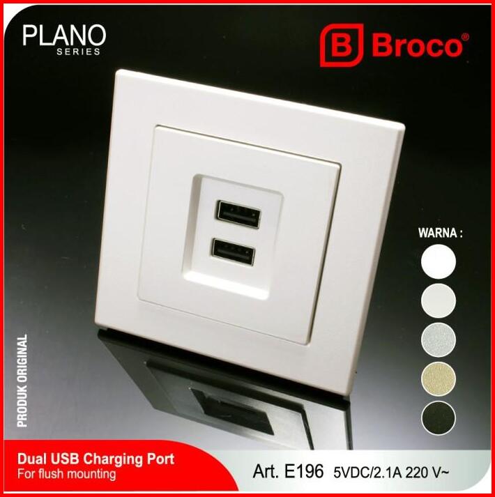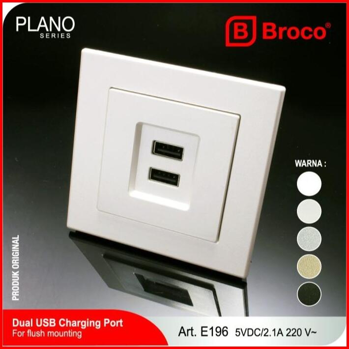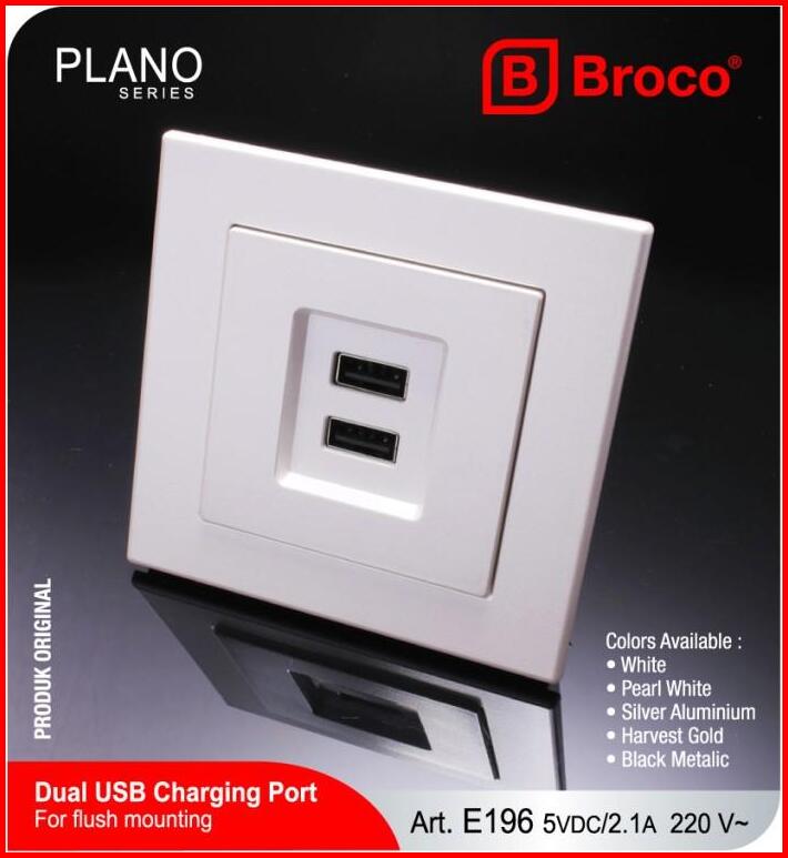 Broco Stop Kontak Usb Ganda Plano Dual Usb Socket E196