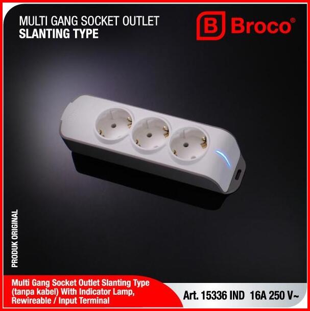 Broco Stop Kontak 3 Lubang Miring Dengan Lampu Indikator Non Child Protection Colokan Listrik Tanpa Kabel Multi Gang 153