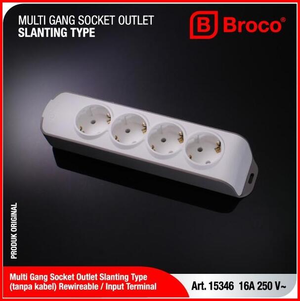 Broco Stop Kontak 4 Lubang Miring Non Child Protection Colokan Listrik Tanpa Kabel Multi Gang 15346