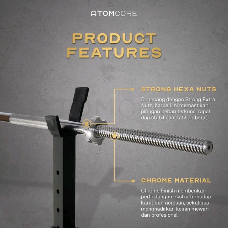 Atomcore Straight Stick Bar 180cm Stik Barbel Lurus Gym Fitness