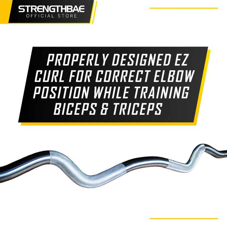 Thunder Bar STRENGTHBAE Ez Curl Barbell Long & Rackable Bicep Tricep Bisep Trisep Biceps Triceps Barbel Lengkung