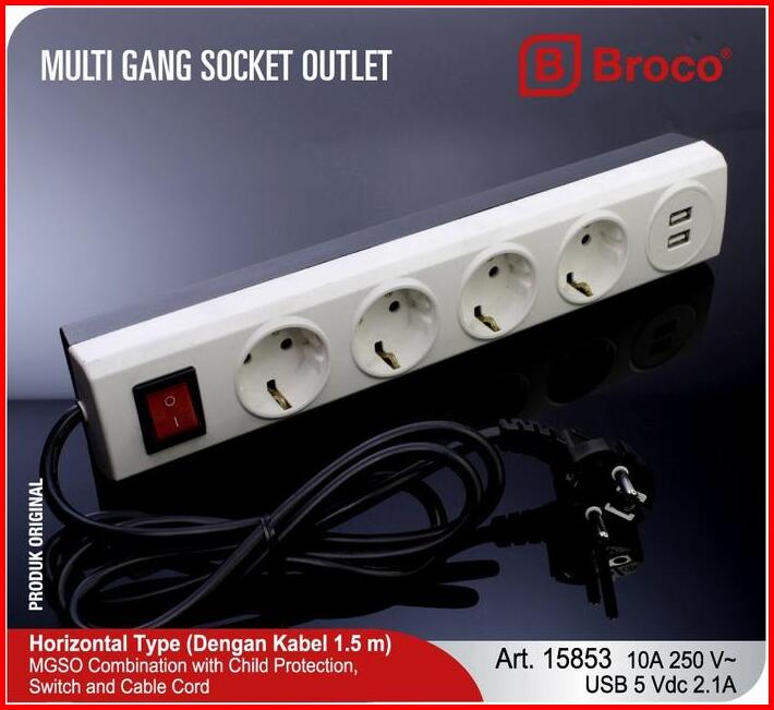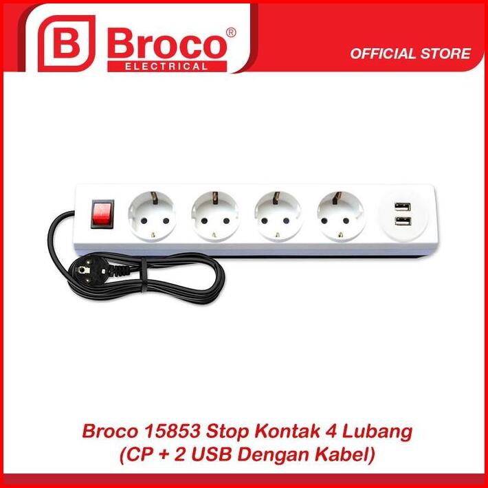 Broco Stop Kontak 4 Lubang Dengan Pengaman Child Protection 2 Colokan Usb Kabel 15853