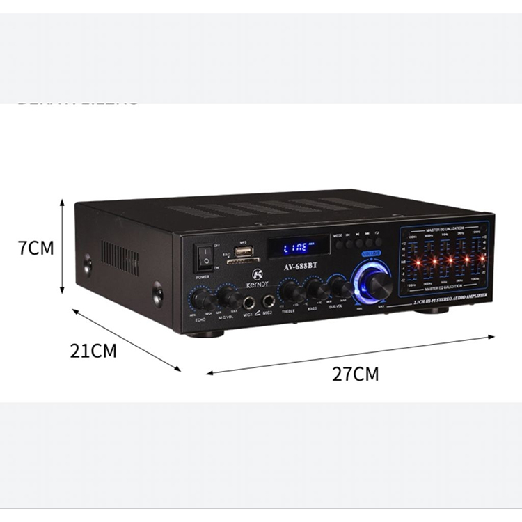 Amplifier Kerndy Bluetooth 5.2 Audio EQ AV-688BT Channel 2.1 Full Bass SUBWOFER Amplifier Karaoke Home Theater AV688BT