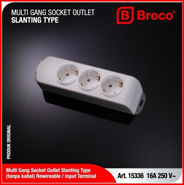 Broco Stop Kontak 3 Lubang Miring Non Child Protection Colokan Listrik Tanpa Kabel Multi Gang 15336