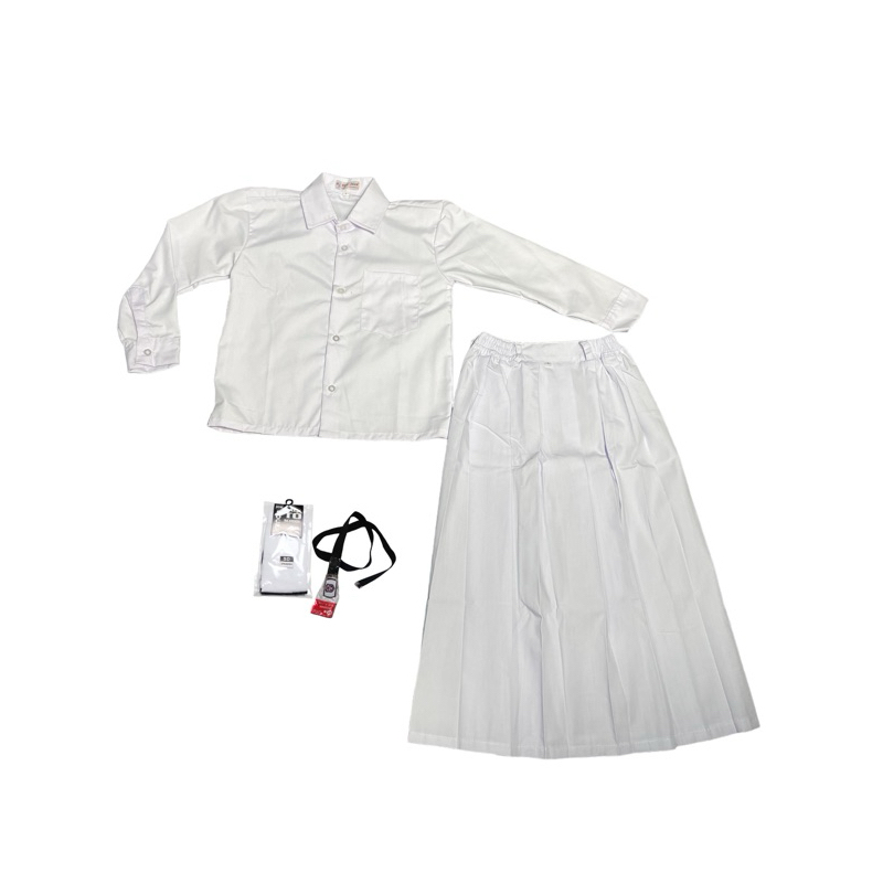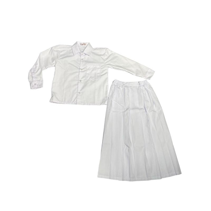 pulapaq store setelan super lengkap,baju+rok jilbab seragam SEKOLAH SD PEREMPUAN PUTIH-PUTIH baju panjang putih rok panjang putih