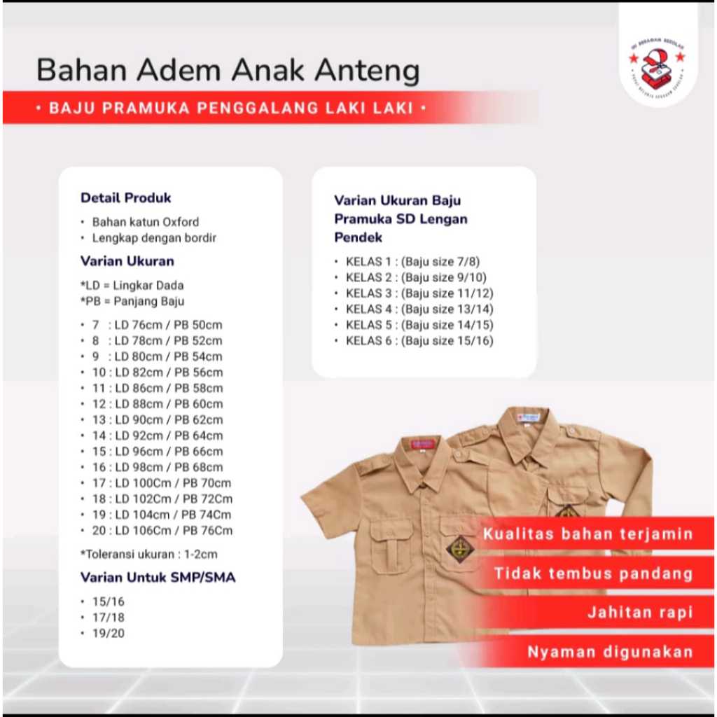 Baju Seragam Pramuka Lengan Pendek Sekolah Dasar SD SMP SMA