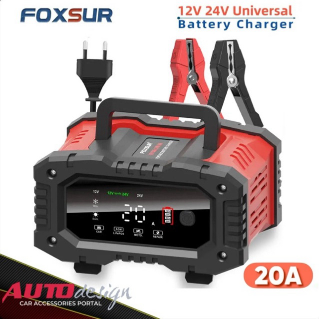 Foxsur 20A Charger Aki Mobil Motor Truk 12V/24V 10A Smart 7 Stage Original