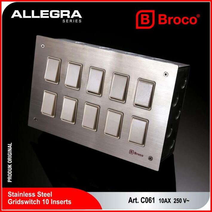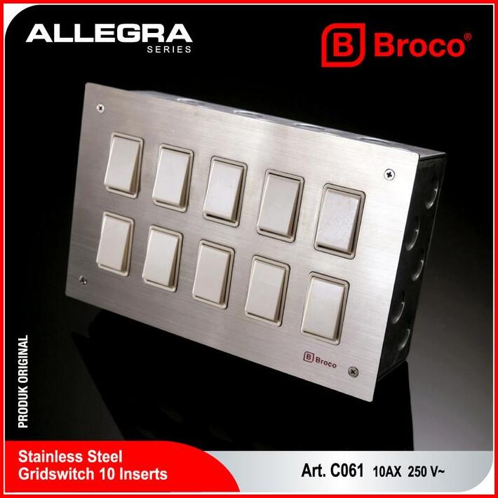 Broco Saklar Grid Switch 10 Gang Allegra Stainless Steel Grid Switch 10 Inserts C061