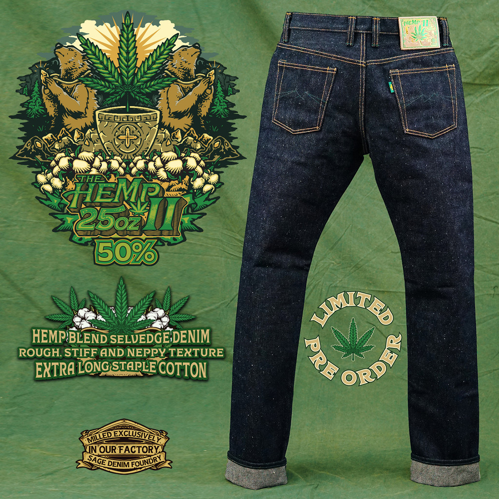 [ Limited Pre-Order ] The Hemp II 25oz Unsanforized Deep Indigo : 50 PERSEN Hemp Blend Selvedge Denim