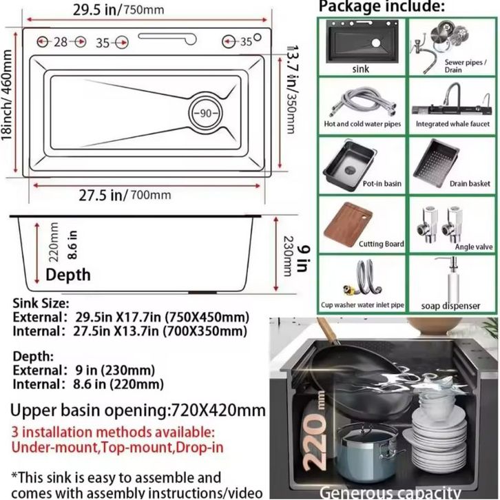 paket kitchen Sink Modern 7545 Luxury/Kitchen Sink Modern Hitam Black Luxury/Bak Cuci Piring