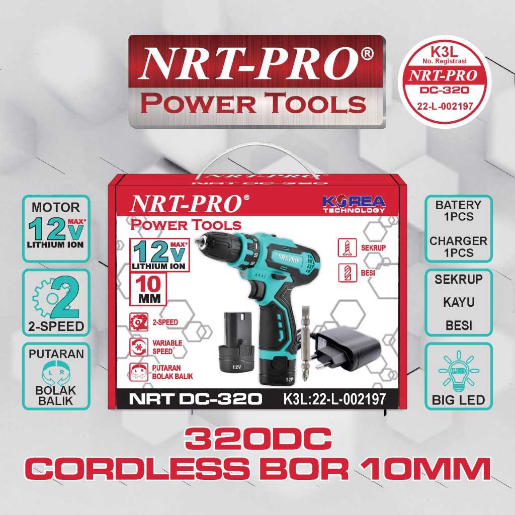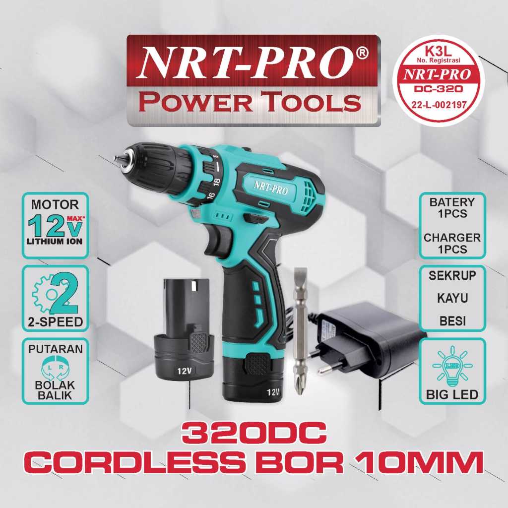 MESIN BOR TANGAN BATERAI 12 VOLT/BOR CORDLESS/CORDLESS IMPACT DRILL NRT-PRO TIPE DC 320 DAN 330