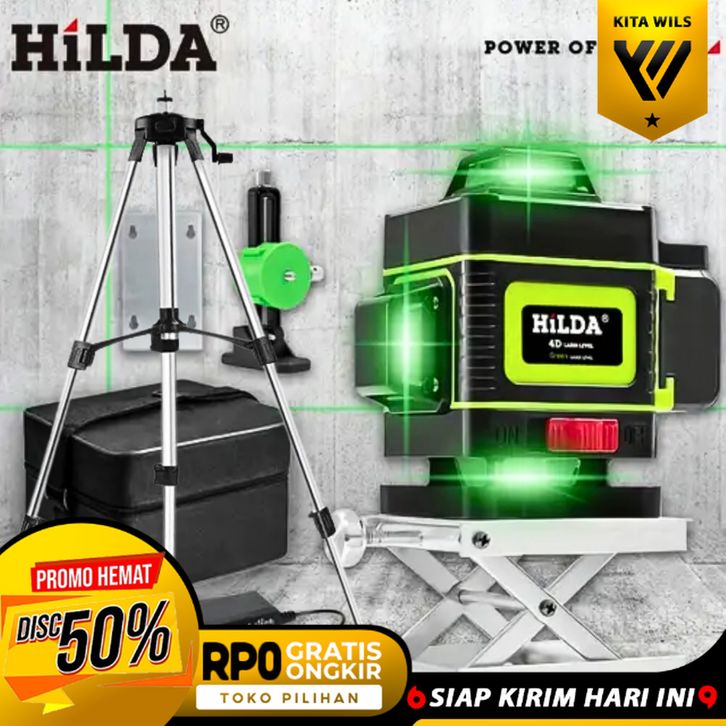 PUSAT Hilda Taffware Laser Level 4D 16 Line komplit + Tripod remote tukang bangunan Leveling LD-515
