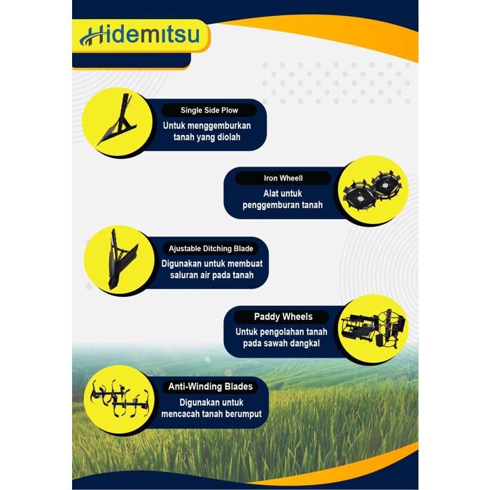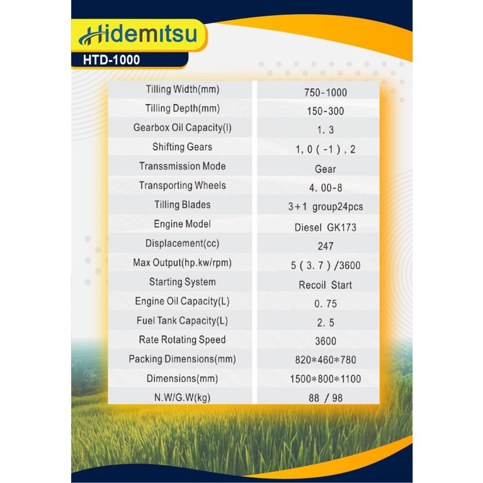 Traktor Diesel Hidemitsu HTD1000 Mesin Bajak Sawah Mini Tiller