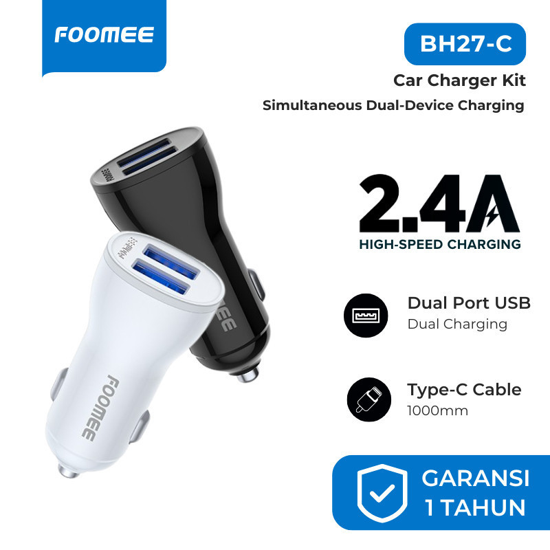 FOOMEE BH27-C CAR CHARGER KIT MOBIL 2.4A HIGH SPEED CHARGING + KABEL TYPE-C 1M