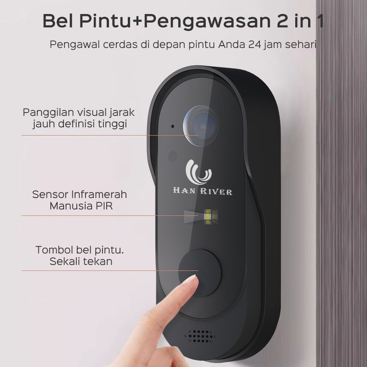 HAN RIVER Bel Rumah Tanpa Kabel WIFI HD Night Vision Multifungsi IP66 Waterproof Doorbell Pintu 1 Receiver