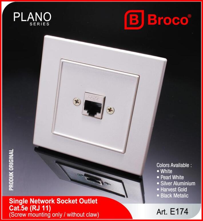 Broco Stop Kontak Jaringan Lan Tunggal Cat5 Rj45 Plano E174