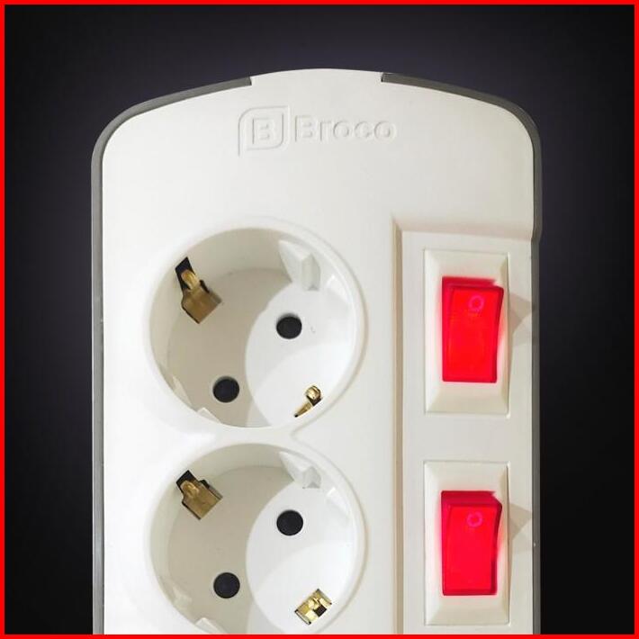 Broco Stop Kontak 4 Lubang Miring Dengan Pengaman Child Protection Individual Switch Kabel Multi Gang 15646