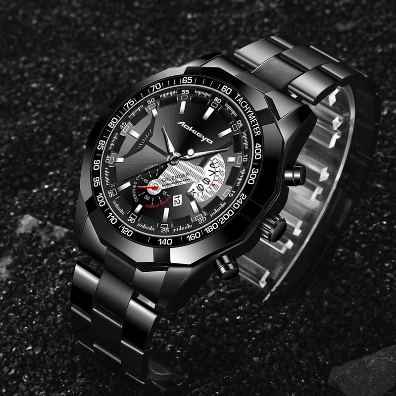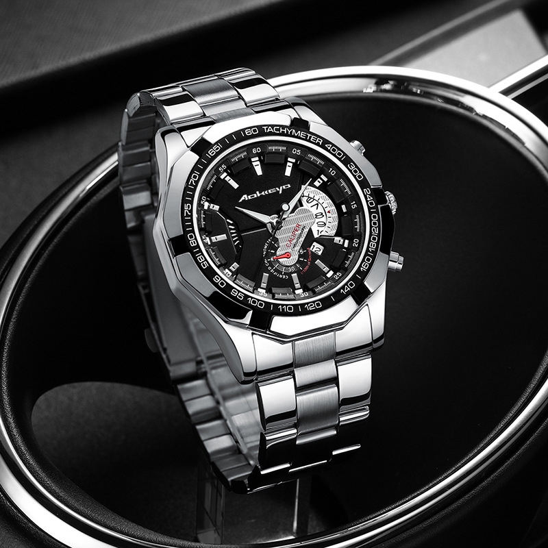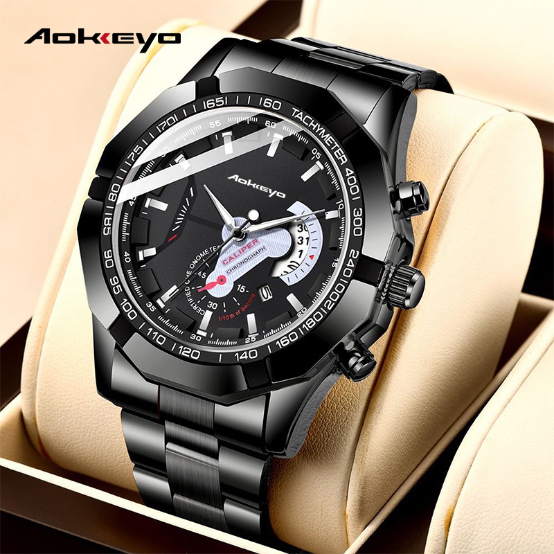 AOKEYO S001 Jam Tangan Pria Anti Air Original Luxury Stainless Steel Free BOX+Kartu