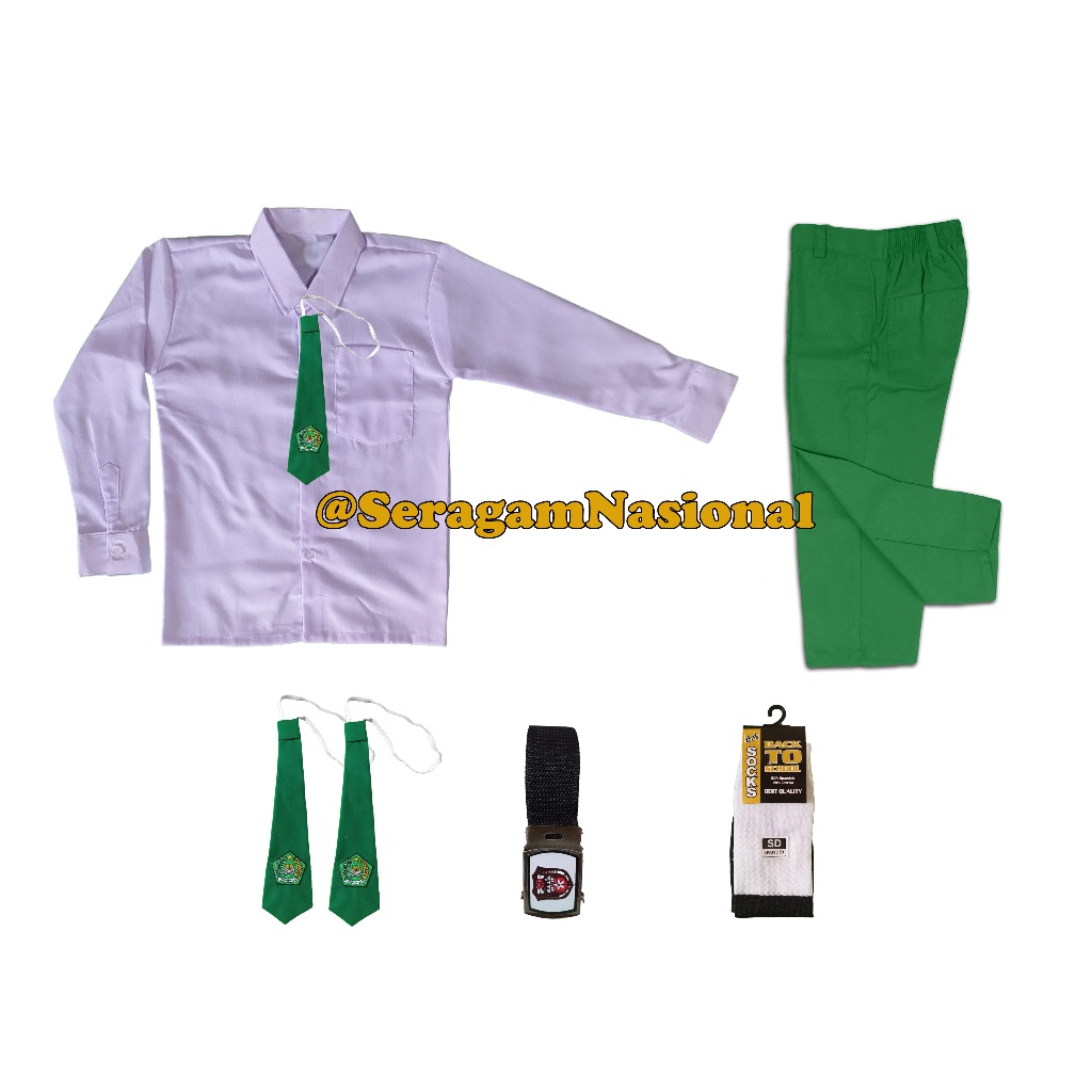 Setelan Seragam Sekolah SD/MI Putih-Hijau Laki Lengkap Panjang