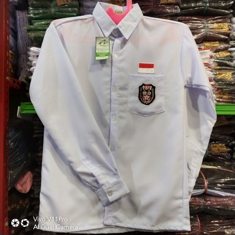 Seragam Sekolah Baju Putih Panjang Kancing SD SMP SMA Kain Tissu