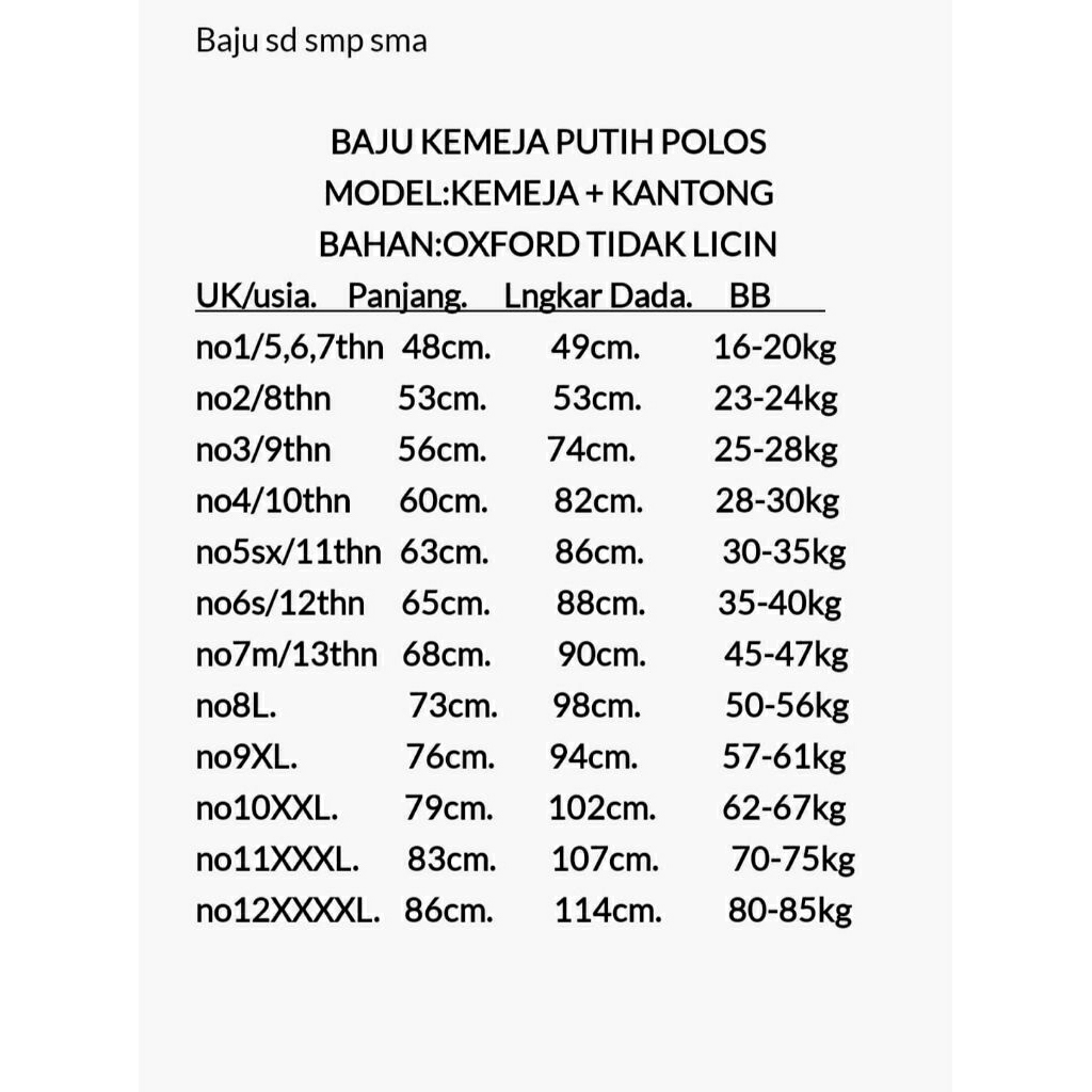Baju putih polos SD SMP SMA lengan panjang seragam sekolah