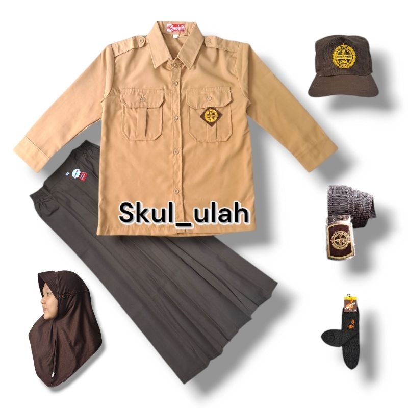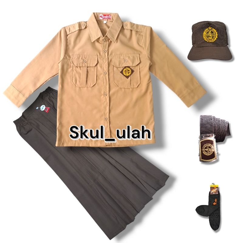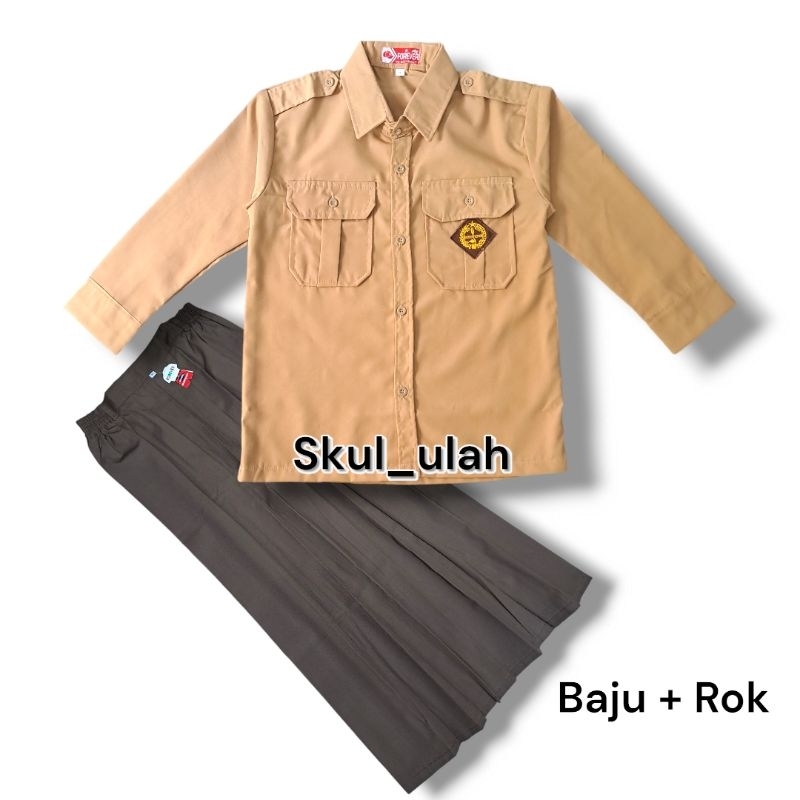 Setelan Seragam Sekolah Pramuka Baju Penggalang Lengan Panjang Rok Coklat Panjang Anak Perempuan Kelas 1_6 Sd